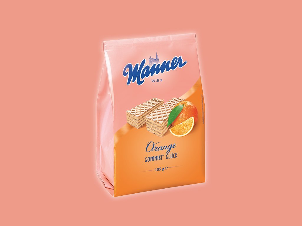 Oplatky Manner Sommer Glück Pomeranč vám poskytnou čistý ovocný požitek.